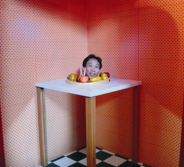 原来是广东科学中心的隐身屋,隐身秘密 在哪里?屋子里的桌子靠墙放置,桌腿之间安 装了两面镜子,与墙壁构成一个盒子,镜面反 射墙壁和地板形成错觉。体验者从桌面探出头 来,由于镜子的遮挡,站在隐身屋外的人们只 能看见体验者的头,趣味无穷。
