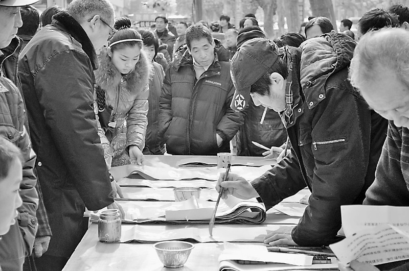 区文化中心门前送写春联