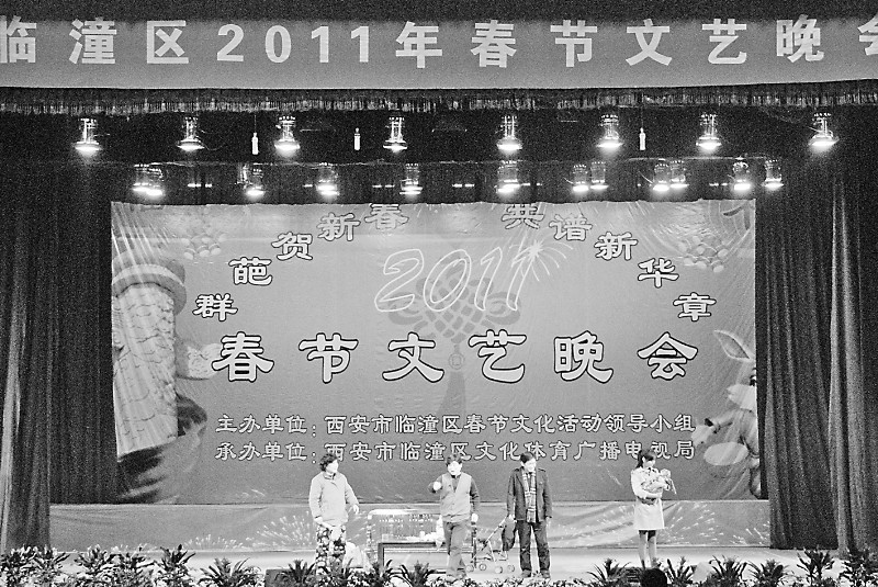舞台演出形式多样 1月26日,北田街办文化广场农民自编自导的文艺晚会,给劳累了一年的乡亲带来了轻松欢笑;1月28日,在区文化中心区老年军乐团进行军乐演奏,引来大批群众驻足观看喝彩;2月12、14日,区文体广电局、民政局在区剧院组织秦腔表演,让戏迷朋友大过戏瘾;2月15日,一台地域色彩浓厚的综合文艺晚会在区剧院上演,进一步增加了节日气氛。